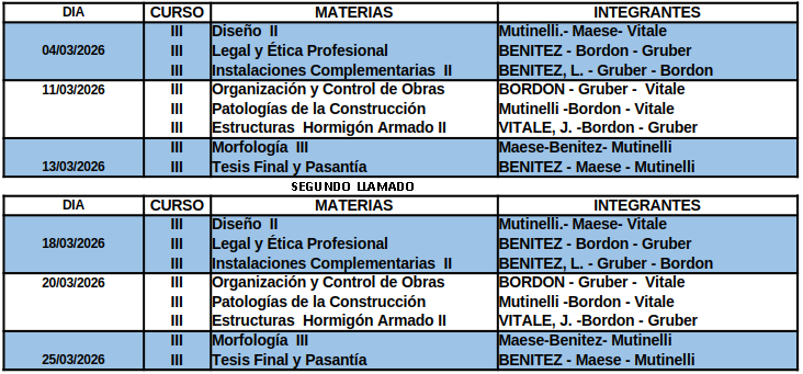 Mesas de Examen Turno Noviembre-Diciembre de 2025